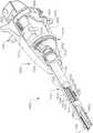 图3是图1和图2的柄部组件和可互换外科工具组件的部分的分解组装视图;3 is an exploded assembled view of portions of the handle assembly and interchangeable surgical tool assembly of FIGS. 1 and 2;