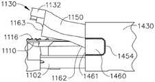 图94是从图81的击发构件延伸的侧向突出部的详细视图,其示意性地示出了另一弯曲状态下侧向突出部与砧座之间的相互作用。Fig. 94 is a detailed view of the lateral projection extending from the firing member of Fig. 81 schematically showing the interaction between the lateral projection and the anvil in another bent condition.