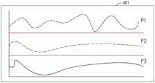 Thesecurity monitoring device 201 may provide theresult 401 of the first statistic to the user through theuser interface 206 as previously described. There are various ways in which thesecurity monitoring device 20 provides the statistical results. Take statistics of the amount of traffic of different network protocols as an example. The statistical results may be displayed graphically (as shown in fig. 6). The graph shows the results of the time statistics of the flow rates of the network protocol P1 (upper dashed line), the network protocol P2 (middle dashed line) and the network protocol P3 (lower solid line). The statistical results can also be displayed in a report form (as shown in fig. 7). The upper and lower flow threshold limits may be preset and statistics exceeding and falling below the upper and lower limits may be displayed in a manner distinguished from other values. The flow thresholds for different protocol types may be different for statistics that exceed the upper limit by the "up arrow" and for statistics that are below the lower limit by the "down arrow". In addition, the statistical result can be provided in a voice prompt mode, the upper limit and the lower limit of the flow threshold value can be preset, and when the upper limit and the lower limit are exceeded, the user is prompted with voice which is easy to attract the attention of the user. Or a statistical result is provided by combining the voice prompt and the chart display, and the user is reminded to judge the abnormal behavior.