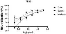 本发明中,单克隆中和抗体7D10和单克隆中和抗体7E10对扎依尔型、苏丹型、马尔堡型三种假病毒均具有良好的中和活性,最大半数结合浓度和最大半数抑制浓度可以达到较高的水平,两种单克隆中和抗体均可以潜在地应用于抗丝状病毒治疗药物研究、丝状病毒检测试剂盒研制以及丝状病毒抗原检测的分子生物学试剂等。In the present invention, the monoclonal neutralizing antibody 7D10 and the monoclonal neutralizing antibody 7E10 have good neutralizing activity against three pseudoviruses of Zaire type, Sudan type and Marburg type, the maximum half binding concentration and the maximum half inhibition concentration Can reach a high level, both monoclonal neutralizing antibodies can potentially be used in anti-filovirus therapeutic drug research, development of filovirus detection kits, and molecular biology reagents for the detection of filovirus antigens.