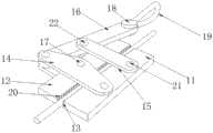 如图2所示,固定装置8包括固定板一11及固定板二12,并且,固定板一11的一侧与壳体1连接,固定板一11与固定板二12之间开设有放置槽13,发明人为了将线头固定更加牢靠,在放置槽13的内部两侧均设有若干锯齿20,固定板一11的一端两侧均设有活动板一14,固定板一11的另一端两侧均设有活动板二15,活动板一14及活动板二15与固定板一11之间均通过活动轴二21连接,并且,活动板一14与活动板二15远离固定板一11的一端均与活动杆16连接,活动板一14及活动板二15 与活动杆16之间均通过活动轴三22连接,活动板一14与固定板二12之间通过活动轴一17连接,活动杆16的远离活动板一 14的一端设有连接块18,连接块18的一侧设有与挂钩9相配合的拉绳19,并且,拉绳19为弹性材质制成,活动柱一3与活动柱二4之间且位于壳体1的内部设有伸缩装置。As shown in FIG. 2 , the fixing