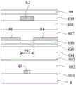 S17, afourth passivation layer 808 is formed, which is the above insulating layer for separating the firstauxiliary electrode 61 from the secondauxiliary electrode 62.