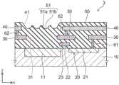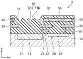 第2开口41的边缘与第1开口31的边缘相比,向从第1开口31的中心远离的方向后退。第2开口41的边缘与第1开口31的边缘相比沿着X方向后退。The edge of the second opening 41 retreats in a direction away from the center of the first opening 31 than the edge of the first opening 31 . The edge of the second opening 41 retreats in the X direction than the edge of the first opening 31 .