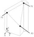 其中,本发明实施方式中所使用的标定块为一种具有特殊形状的三维标定块,具体表现为:如图1所示,三维标定块为多面体结构且形状不规则,所述关键点为三维标定块上P1、P2、P3点,其中关键点P1、P2、P3在高度方向不重合,且基本在高度方向均匀分布。本发明实施方式通过这种特殊结构的三维标定块确定关键点在三维视觉系统坐标系的坐标值。The calibration block used in the embodiment of the present invention is a three-dimensional calibration block with a special shape, which is specifically represented as follows: as shown in FIG. Points P1, P2, and P3 on the calibration block, among which the key points P1, P2, and P3 do not overlap in the height direction, and are basically evenly distributed in the height direction. The embodiment of the present invention determines the coordinate value of the key point in the coordinate system of the three-dimensional vision system through the three-dimensional calibration block with this special structure.