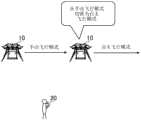 另外,在本发明的一形态中,其特征在于:所述第1信息是与在所述第1自主飞行控制下自主飞行中的所述无人飞行器的移动方向及移动速度中的至少一个相关的信息,所述第2信息是与在所述第2自主飞行控制下使所述无人飞行器自主飞行时的移动方向及移动速度中的至少一个相关的信息。In addition, in an aspect of the present invention, the first information is related to at least one of the moving direction and moving speed of the UAV in autonomous flight under the first autonomous flight control. The second information is information related to at least one of a moving direction and a moving speed when the UAV is autonomously flown under the second autonomous flight control.