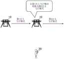 另外,在本发明的一形态中,其特征在于:所述无人飞行器控制系统包含通话设备,所述通话设备在从基于所述第1指示信息控制所述无人飞行器切换为基于所述第2指示信息控制所述无人飞行器的情况下,使所述第1无线操纵设备与所述第2无线操纵设备进行通话。In addition, in an aspect of the present invention, the UAV control system includes a communication device, and the communication device switches from controlling the UAV based on the first instruction information to controlling the UAV based on the first instruction information. 2. When instructing information to control the unmanned aerial vehicle, make the first wireless control device communicate with the second wireless control device.