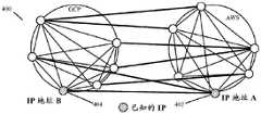 可替代地或相结合地,在一些实施例中,通过将节点添加到这个图中以表示源端点和目的地端点、将IP地址指派给这些节点并将权重值指派给将这些添加的节点连接到路由图中的其它节点(例如,连接到路由图中表示公共云中的MFN的节点),处理500将已知的源 IP地址和目的地IP地址添加到路由图。当流的源端点和目的地端点被添加为节点时,路径识别引擎282可以在识别出通过不同源端点和目的地端点之间的虚拟网络的不同路由时考虑到达这些节点的成本 (例如,距离成本、延迟成本和/或财务成本等)。Alternatively or in combination, in some embodiments, these added nodes are connected by adding nodes to this graph to represent source and destination endpoints, assigning IP addresses to these nodes, and assigning weight values to the nodes. To other nodes in the routing graph (eg, nodes connected to the routing graph representing MFNs in the public cloud),