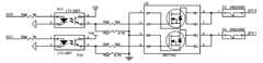 As shown in fig. 1 to 9, the optical coupler andisolator circuit 8 optically couples and isolates the input part DI-n (in the figures, DI-0 and DI-1, other inputs are the same, and the low level is active). Signals are input from DI-0, noise reduction and filtering processing is carried out through a capacitor C11 and an inductor L7, signals of a resistor R14 are limited in current, the capacitor C9 is DC24V in decoupling mode, and a resistor R11 and a resistor R14 form voltage division with a sensor, so that the functions of an optical coupler and the sensor are protected. The input signal is coupled to a 3-pin output low level through an optical coupler LTV-356T and is sent to themain chip 1. The optical coupler isolation output part DOn (DO 0 and DO1 in the figure, other outputs are the same, and the low level is effective). The signal is output from DO0, and is limited by a resistor R88 signal, and an optical coupler LTV-356T is coupled to apin 3. Resistance R92 is opto-coupler output current-limiting resistance, and resistance R89 is field effect switch tube IRF7103 gate resistance, and switch tube IRF7103 adopts OCL output, can improve and take load capacity. After the circuit is isolated by the optical coupler, an external power supply and an internal power supply can be separated, the anti-jamming capability of the circuit is improved, and a core circuit is effectively protected.