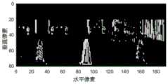图1(a)和图1(b)是分别示出路面点线的原始图像及经视觉相机系统处理的差分图像的示图;Fig. 1 (a) and Fig. 1 (b) are the diagrams showing respectively the original image of the road point line and the differential image processed by the visual camera system;