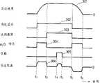 图9是根据本发明的第三实施例的用于驱动马达的逆变器控制设备的操作流程图。现在根据图9描述由加速/减速—稳定状态PWM切换电路16进行的操作流程图。首先,在步骤307判定加速/减速标志是否导通。如果该标志不导通,则在步骤308检查启动指令。如果该指令还没有改变,则在步骤309将fpwm设定为fpwmL=3—5kHz。如果在步骤308所检查的指令已经改变,则在步骤310使加速/减速标志导通并在步骤311将fpwm设定为fpwmH=5—20kHz。如果在步骤307加速/减速标志为导通,则在步骤312检查达到速度信号。如果它为导通,则程序进行到步骤311。如果该信号不导通,则在步骤313将加速/减速标志关断,且操作随后进行到步骤309。9 is an operation flowchart of the inverter control device for driving a motor according to the third embodiment of the present invention. A flow chart of operations performed by the acceleration/deceleration-steady state PWM switching circuit 16 will now be described with reference to FIG. 9 . First, it is determined in