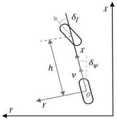 车辆横摆角速度ω由速度v、方向盘转角δs、转向器角传动比K以及轴距h共同决定,即:The vehicle yaw rate ω is determined by the speed v, the steering wheel angle δs , the steering gear angular transmission ratio K and the wheelbase h, namely: