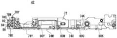 虽省略图示,但第3实施例中,3个彩色用配线部件74Y、M、C皆主要配设于前侧架72的底面。另一方面,黑色用配线部件74K主要配设于前侧架72的上表面。而且,各单元侧接点端子78从上侧起按照KCMY的顺序沿上下方向呈直线状并排配置在前侧架72的背面侧左端部。Although not shown, in the third embodiment, the three