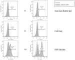 FIG. 3 shows the results of FACS measurements of the binding of phage antibody clones to the cell surface target antigen (Jurkat-103A scFv).