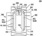 例示性地参照图7,可以提供配置用于沿着线性导件364的沉积源200的平移运动的源支撑件361。典型地,源支撑件361支撑坩埚组件100以及提供在坩埚组件上的分配组件220,如图7所示意性示出的。因此,产生于蒸发坩埚中的蒸气可向上移动并离开分配组件的一个或多个出口。因此,如本文所描述的,分配组件被配置用于从分配组件220至基板10提供蒸发材料,具体地是蒸发的有机材料的羽流。Referring illustratively to FIG. 7 , a