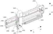其中,如图15和图16所示,所述采样装置22包括:沿所述第一方向即Y1-Y2方向设置的水平支架2201和沿竖直方向即Z1-Z2方向设置的竖直支架2221。其中,所述竖直支架2221可沿所述第一方向即Y1-Y2方向运动地设置在所述水平支架2201上,以使所述竖直支架2221在所述水平支架上沿所述第一方向即Y1-Y2方向往返运动,以实现取样和将取样排出至检测装置中用于进行分析。Wherein, as shown in FIGS. 15 and 16 , the