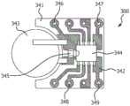 图13是根据至少一个实施方式的印刷在图12所示的壳体上的导电油墨图案的示意图,该壳体是用于制造实施例8中所述的电子模块;13 is a schematic diagram of a conductive ink pattern printed on the housing shown in FIG. 12 for use in making the electronic module described in Example 8, in accordance with at least one embodiment;