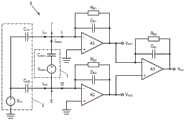 In thefourth measuring circuit 6, one input of a first single-ended amplifier a1 is connected to thefirst electrode 7 of thepiezoelectric sensor 1 for receiving a first measuring current I1And the other input of the first amplifier a1 is connected to ground. Similarly, one input of the second single-ended amplifier a2 is connected to thesecond electrode 8 of thepiezoelectric sensor 1 to receive the second measurement current I2And the other input of the second amplifier a2 is connected to ground. One input of the third single-ended amplifier A3 is connected to the output V of the first amplifier A1out1And the other input is connected to the output V of the second amplifier a2out2. Each of the amplifiers A1, A2, A3 has a respective resistor-capacitor feedback network Rfb1-Cfb1、Rfb2-Cfb2、Rfb3-Cfb3。