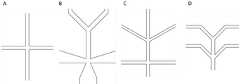 wherein A is a single-phase microgel production unit, B is a yin-yang structural microgel production unit, C is a core-shell structural microgel production unit, and D is a 4-petal microgel production unit (four-branch channel);