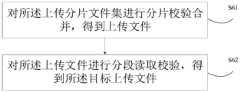 S61、对所述上传分片文件集进行分片校验合并,得到上传文件;S61, performing fragment verification and merging on the uploaded fragmented file set to obtain the uploaded file;
