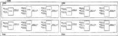 Continuation is referring to Fig. 7 C, finish mirror image, so that programmable switch, be about to described element and be connected to switch on the I-matrix line, the Connection Element of described assembly is transformed into the switch of piece connector line and provides on the switch of I-matrix expansion, the switch corresponding with each piece can be adjacent in plane figure.As seeing from Fig. 8 A, 2 * 2 matrixes can be designed to have memory and the transmission gate array of realizing as the continuous piece ofmemory 855 830,840 and 850.Except making layout dead zone minimum, when most small pieces were made up of the memory array with little logic block (for example logic module 820), this plane figure had been simplified manufacturing.In addition, by the grouping of memory array is provided, in the time can using simple X-Y addressing, the programming of described chip is simplified.Fig. 9 shows the example of an associative memory and transmission gate array.