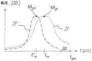 As shown in FIG. 3, the maximum M of the curve ZF' is evaluated in comparison with the evaluation signal ZFZF'Time t 'is conducted to lower signal by compressing delta t'mAnd (6) correcting. Thus, assume sample rate f'cThe invention compensates for any undesired compression or expansion of the evaluation signal ZF due to erroneous control deviations from its set value. In addition to improving the accuracy of the level measurement, this also provides that thelevel measuring device 1 can be designed to be at a sampling rate f'cIs less complex in terms of control.