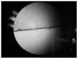 It is preferred to state that in the prior art, the small-sized ultra-thin flexible glass sheet is usually obtained by thinning and then cutting a large-sized plate glass. And in the cutting process: if traditional diamond cutting is adopted, a certain number of round notches or edge breakage can be generated at the edge of the small-size flat glass obtained by cutting due to overlarge force, and tiny cracks can be generated at the edge part in severe cases, as shown in fig. 1; if the laser cutting method is adopted, the expansion caused by heat and contraction caused by cold due to the temperature generated by the laser cutting also can cause the edge of the small-size plate glass obtained by cutting to generate tiny cracks. That is, regardless of mechanical cutting or laser cutting, the glass is very prone to crack at the cut edge of the glass during cutting, and the crack at the cut edge greatly reduces the strength of the glass and makes the glass non-bendable, and even more deadly, the glass with the edge crack rapidly propagates under stress during chemical strengthening, causing fracture and breakage. It is also very difficult to polish and remove the edge crack by mechanical or chemical methods because the thickness of the ultra-thin glass is too thin.