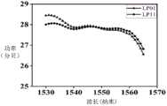 结合图15所示,其中,图15为增益光纤所输出的两种第一光信号模式LP01以及LP11的光谱图。第一光信号模式LP01以及LP11已经被光纤滤波器的滤波,每个第一光信号模式在光谱图中的功率均有相当小的起伏,如图15所示,各第一光信号模式的功率最大值和功率最小值的比值均小于0.5。Referring to FIG. 15 , FIG. 15 is a spectrogram of the two first optical signal modes LP01 and LP11 output by the gain fiber. The first optical signal modes LP01 and LP11 have been filtered by the fiber filter, and the power of each first optical signal mode in the spectrogram has quite small fluctuations. As shown in Figure 15, the power of each first optical signal mode The ratio of the maximum value to the minimum power value is less than 0.5.