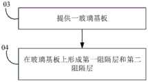04 forming afirst barrier layer 14 and asecond barrier layer 15 on theglass substrate 10; the material of thefirst barrier layer 14 and thesecond barrier layer 15 is different from the material of theglass substrate 10.