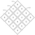 Fig. 4B provides an embodiment of the firstaxial touch electrode 211 and the secondaxial touch electrode 212. The intersection of one firstaxial touch electrode 211 and one secondaxial touch electrode 212 forms asensing unit 214. Each of the firstaxial touch electrodes 211 and each of the secondaxial touch electrodes 212 is made of a metal mesh (metal mesh), which includes a mesh pattern formed by a plurality ofmetal wires 215 arranged in a staggered manner. In the Z direction, the plurality ofmetal wires 215 do not overlap thepixel electrode 111. Themetal wires 215 are staggered to form a plurality of meshes, so that thepixel electrode 111 of thedisplay portion 10 is not shielded by thetouch sensor 21, in other words, themetal wires 215 at least partially overlap with thelight shielding portion 112 of thedisplay portion 10 in the Z direction.