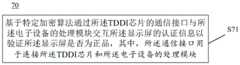 It should be understood that in a specific implementation, each chip may correspond to a unique private key, for example, theTDDI chip 20 or the display screen 1 may correspond to a private key, and the private key of theTDDI chip 20 or the display screen 1 cannot be known by other chips. In a specific implementation, theTDDI chip 20 is integrated in the display screen 1, and cannot be separated from the physical package or the electrical driving, so that the validity of theTDDI chip 20 is authenticated, i.e. the validity of the display screen 1 is authenticated, in other words, theTDDI chip 20 is an authentic product and the display screen 1 is an authentic product.
