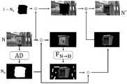 As shown in fig. 2, two attention networks AD and AN are added on the basis of the CycleGAN network. AD is the attention module used when N is converted to D, and AN is the attention module used when D is converted to N. The network work flow is that firstly N obtains a mask N through an attention network ADaThe attention layer will highlight the foreground and the background will be ignored, thus N and mask N are addedaThe foreground map is obtained by bit-wise multiplication and then passes through a generator FN→DObtaining a foreground image after conversion, and then neutralizing the foreground image with a mask NaThe bit-wise multiplication removes the background of the generated image. Mixing N and 1-NaObtaining a background image by bit multiplication, and finally adding the converted foreground image and the background image to obtain a final output N', wherein the calculation formula is as follows: