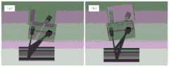 为了定量分析激光平面的点头运动和摇头运动对钢轨轮廓测量结果的影响,利用钢轨轮廓全断面测量系统仿真模型模拟行车过程中激光平面的点头运动和摇头运动,如图4所示为模拟行车过程中激光平面与钢轨纵向垂直的示意图,模拟测量标准60kg/m钢轨,得到标准钢轨的垂直磨耗和侧面磨耗测量结果。建立如图4中的(a)所示的激光平面坐标系,图4中的(a)为俯视图,图4中的(b)为左视图,其中,XOY平面位于激光平面上,X轴与轨距方向相同,Y轴垂直钢轨纵向。激光平面绕X轴旋转记为RX,通过绕X轴旋转模拟点头运动,如图5所示为模拟行车过程中激光平面点头运动的示意图,图5中的(a)RX=-5°,图5中的(b)RX=5°。绕Y轴旋转记为RY,通过绕Y轴旋转模拟摇头运动,如图6所示为模拟行车过程中激光平面摇头运动的示意图。模拟过程中,设置点头角度从RX=-5°(图6中的(a))到RX=5°(图6中的(b)),步长1°,摇头运动的采样间隔与点头运动相同。In order to quantitatively analyze the influence of the nodding and shaking motions of the laser plane on the measurement results of the rail profile, the full-section measurement system simulation model of the rail profile is used to simulate the nodding and shaking motions of the laser plane during the driving process, as shown in Figure 4 for the simulated driving process. The schematic diagram of the laser plane perpendicular to the longitudinal direction of the rail, simulates the measurement of a standard 60kg/m rail, and obtains the measurement results of vertical wear and side wear of the standard rail. Establish a laser plane coordinate system as shown in (a) in Figure 4, (a) in Figure 4 is a top view, and (b) in Figure 4 is a left view, where the XOY plane is located on the laser plane, and the X axis and the The gauge direction is the same, and the Y axis is vertical to the longitudinal direction of the rail. The rotation of the laser plane around the X-axis is recorded as RX, and the nodding motion is simulated by rotating around the X-axis. Figure 5 is a schematic diagram of the nodding motion of the laser plane during the simulation of the driving process. (a) RX=-5° in Figure 5, Figure (b) RX = 5° in 5. The rotation around the Y axis is recorded as RY, and the shaking movement is simulated by rotating around the Y axis. Figure 6 is a schematic diagram of simulating the shaking movement of the laser plane during driving. During the simulation, set the nodding angle from RX=-5° ((a) in Fig. 6) to RX=5° ((b) in Fig. 6), the step size is 1°, the sampling interval of the shaking head movement and the nodding movement same.