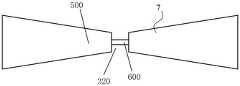 根据本发明的实施例,微波接收天线500接收到的微波信号在微波接收天线的第一臂和第二臂之间形成振荡电场。第二狭缝320两边的金属材料形成一个电容,在第二狭缝处的纳米线600类似一个电阻,微波接收天线500与纳米线600并联。第二狭缝320电容的容抗大于纳米线600的阻抗。According to the embodiment of the present invention, the microwave signal received by the