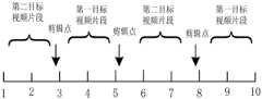 determining clipping points of video segments to be clipped according to the target video elements to obtain a plurality of first target video segments containing the target video elements and a plurality of second target video segments not containing the target video elements;