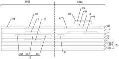 As shown in fig. 2, thesecond buffer layer 1 is disposed on a surface of thesecond substrate 1013 on a side away from thefirst substrate 1011, and is located in thedriving region 1021 and theswitching region 1022. Thesecond buffer layer 1 may be SiOx or SiNx. Thesecond buffer layer 1 may be a multilayer film formed of SiOx and SiNx.