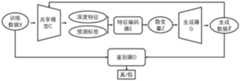 其中,X为训练特征编码器的训练样本,为生成器生成的样本,为将X输入协同学习共享模型预测的标签信息;表示交叉熵损失函数;Fvgg是一个预训练的VGG(Visual Geometry Group)网络,用于提取感知损失LPIPS loss(Learned PerceptualImage Patch Similarity,可学习图像块感知相似性);λLPIPS和λadv是可调整的超参数,用于各个损失之间的权重分配,根据经验可以分别将其设置为0.0001以及0.1;指取均值,表示鉴别器对的预测分数;其中,可以保证生成的图片尽量与原图相似,保证特征编码器E能够根据输入预测标签编码为具有该类别特征的隐变量,用于保证生成图片的质量。Among them, X is the training sample for training the feature encoder, the samples generated for the generator, In order to input X into collaborative learning to share the label information predicted by the model; Represents the cross-entropy loss function; Fvgg is a pre-trained VGG (Visual Geometry Group) network for extracting the perceptual loss LPIPS loss (Learned Perceptual Image Patch Similarity, which can learn image patch perceptual similarity); λLPIPS and λadv are available The adjusted hyperparameters are used for weight distribution between various losses, which can be set to 0.0001 and 0.1 according to experience; refers to the mean value, represents the discriminator pair The prediction score of ; where, It can be ensured that the generated image is as similar to the original image as possible. It is guaranteed that the feature encoder E can encode the latent variable with the feature of this category according to the input prediction label, Used to ensure the quality of the generated images.