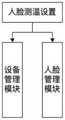 本发明一个较佳实施例中,所述人脸测温模块用于设备管理及数据管理, 所述人脸测温模块包括设备管理模块与人脸管理模块;In a preferred embodiment of the present invention, the face temperature measurement module is used for equipment management and data management, and the face temperature measurement module includes a device management module and a face management module;