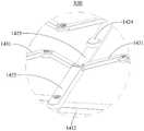 需要说明的是:对于电子设备10而言,其在第三方向上的尺寸往往小于其在第二方向上的尺寸。基于此,对于中间滑块1412形成的容置腔14127而言,其在第三方向上的尺寸可以保持不变,而在第二方向和第一方向上的尺寸顺次逐渐变化,同样可以实现上述“俄罗斯套娃”的结构。进一步地,第一滑块1411或者第二滑块1413的结构可以与中间滑块1412的类似,例如也可以设有相应的容置腔,以便于收纳与之相连的中间滑块1412。其中,当第一滑块1411设有用于收纳与之相连的中间滑块1412的容置腔之后,由于第二滑块1413是被与之相连的中间滑块1412收纳而无需收纳其他滑块,使得第二滑块1413可以不用设置所谓的容置腔,以在一定程度上简化第一支撑组件141的结构。It should be noted that: for the
