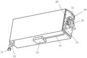 图4为电加热热水器内部结构图,所述发热部件包括水平设置在储水腔29内部的电加热管32,所述电加热管32右端穿过侧封板24及保温层,端头设置接线柱33与侧封板24上的供电板电性连接,所述侧封板24上的供电板外接市电,通电后电加热管32发热对水箱内储水进行加热;4 is an internal structure diagram of the electric heating water heater. The heating component includes an