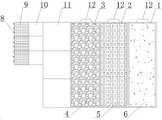 具体的,在第一过滤层1内设置细沙石填充物6,在第二过滤层2内设置过滤海绵填充物5,在第三过滤层3内设置晴纶棉填充物4。考虑过滤密度沿排水方向递增,能够将水分进行充分过滤后进行储存。Specifically, a