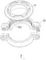 7-快拆连接件;71-安装圈;72-固定圈;721-第三环形凸体;722-第二定位凸体;7-Quick release connector; 71-Installation ring; 72-Fixing ring; 721-Third annular convex body; 722-Second positioning convex body;