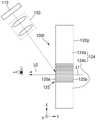 衍射图案125可以包括衍射光学元件(DOE)、全息光学元件(HOE)或超表面。DOE可以包括多个周期性精细光栅图案。DOE的光栅图案充当衍射入射光的衍射光栅。特别地,根据光栅图案的尺寸、高度、周期等,在预定角度范围内入射的光可以被衍射并受到相消干涉和相长干涉,因此,在光聚焦的同时,光的传播方向可以改变。HOE可以包括具有不同折射率的材料的周期性精细图案而不是包括光栅图案。HOE可以仅在结构上与DOE不同,并且可以具有与DOE相同的工作原理。或者,衍射图案125可以包括超表面(meta-surface)。超表面可以包括具有比其周围高的折射率和比入射光的波长小的尺寸的纳米级图案。根据纳米级图案的尺寸、高度、周期、分布、折射率等,超表面可以具有给定的光学效果。The