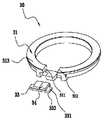 图7和图8示出了第二种实施方式中光源装置30的示意图。在本实施例中,电机、传动组件、齿轮箱、动力输出件以及光源装置的安装位置与第一实施例基本相同,区别仅在于光源装置30的具体结构不同。第一实施方式中与本实施方式中相适用的部分均可以应用到本实施方式中,以下仅介绍本实施方式与第一实施方式的区别部分。7 and 8 show schematic diagrams of the