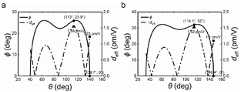 有效非线性系数deff与相位匹配角(θ,φ)有关,YCOB晶体和GdCOB晶体在1640nm的相位匹配角和deff曲线如图3所示,a图为YCOB晶体,b图为GdCOB晶体。YCOB晶体在(113°,25.9°)切向的deff最大,为1.55pm/V,在主平面切向(139.7°,0°)的deff大小仅为1.23pm/V;GdCOB晶体在(114.1°,32°)切向的deff最大,为1.52pm/V,在主平面切向(146.4°,0°)的deff大小仅为1.1pm/V。The effective nonlinear coefficient deff is related to the phase matching angle (θ, φ). The phase matching angle and deff curves of YCOB crystal and GdCOB crystal at 1640nm are shown in Figure 3. Figure a shows YCOB crystal, and picture b shows GdCOB crystal. The deff of the YCOB crystal in the (113°, 25.9°) tangential direction is the largest, which is 1.55pm/V, and the deff in the main plane tangential direction (139.7°, 0°) is only 1.23pm/V; the GdCOB crystal is in ( 114.1°, 32°) has the largest tangential deff of 1.52pm/V, and the tangential deff of the main plane (146.4°, 0°) is only 1.1pm/V.