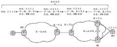 互联网被分为多个自治域(autonomous system,AS),不同的自治域之间运行多协议边界网关协议(multi-protocol external border gateway protocol,MP-EBGP)。自治域中的边缘路由设备通过MP-EBG将该自治域内所有的虚拟专用网络(virtual privatenetwork,VPN)路由信息,发布给另一个自治域的边缘路由设备。该另一个自治域中的边缘路由设备为接收到的VPN路由信息重新分配标签,并在自身所在的自治域内进行通告。The Internet is divided into multiple autonomous domains (autonomous system, AS), and the multi-protocol external border gateway protocol (multi-protocol external border gateway protocol, MP-EBGP) runs between different autonomous domains. An edge routing device in an autonomous domain advertises all virtual private network (virtual private network, VPN) routing information in the autonomous domain to an edge routing device in another autonomous domain through the MP-EBG. The edge routing device in the other autonomous domain redistributes a label for the received VPN routing information, and advertises it in the autonomous domain where it is located.