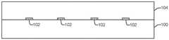 图3示出了根据第一种方法在其制作的早期阶段的无凸块超导器件的第一部分的截面图。提供第一衬底100,其包括跨第一衬底100的顶表面彼此间隔开的多个导电接触焊盘102。第一衬底可以由硅或其他结构材料形成。多个导电接触焊盘102可以通过第一衬底100内的导电接触(未示出)和/或导线(未示出)耦合到第一衬底100中的下层器件。可以通过光刻胶图案化和接触材料填充沉积工艺形成多个导电接触焊盘102。可除去或剥离光刻胶以形成多个导电接触焊盘102。Figure 3 shows a cross-sectional view of a first part of a bumpless superconducting device at an early stage of its fabrication according to a first method. A
