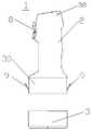 参照图18和图19,本实施例还提供一种手柄,该手柄1包括手柄芯体4和用于封装手柄芯体4的无菌外壳,该无菌外壳与实施例1相比不同的是,固定装置为按压弹出部件31,按压弹出部件31位于本体2中,安装在本体2远离第一开口的一侧。本实施例中,按压弹出部件31为卡扣,手柄芯体4的上部设有与按压弹出部件31配合的第一限位槽13。Referring to Fig. 18 and Fig. 19, this embodiment also provides a handle, the