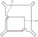 此外,形成贯穿孔151的位置是根据在芯片垫150上粘贴的胶带160的位置来决定的,为了将半导体芯片通过胶带160可靠地接合于芯片垫150上,优选使贯穿孔151形成于俯视视角下与半导体芯片不重叠的位置。通过配合贯穿孔151的形成位置对胶带160的大小进行调整,则可以以覆盖半导体芯片的搭载范围且基准点位于贯穿孔151内的方式粘贴胶带160。此外,贯穿孔151形成为,具有大于等于胶带160的基准点(线)可能存在的预设范围的大小的各种形状即可。因此,例如除正方形及长方形等矩形以外,贯穿孔151的形状也可以是各种多边形、圆形或椭圆形等。In addition, the position where the through
