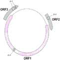 在一些实施例中,本文所述的组合物和方法可用于产生包含衣壳(例如,包含指环病毒ORF如ORF1、多肽的衣壳)的感染性(例如,对人类细胞具有感染性)指环载体、媒介物或颗粒的遗传元件,该衣壳封装遗传元件,该遗传元件包含与衣壳结合的蛋白结合序列和编码治疗性效应物(该治疗性效应物可用于本文所述的施用指环载体的方法)的异源(针对指环病毒而言)序列。在实施例中,指环载体能够将遗传元件递送至哺乳动物(例如,人类)细胞中。在一些实施例中,遗传元件与野生型指环病毒基因组序列具有小于约6%(例如,小于10%、9.5%、9%、8%、7%、6%、5.5%、5%、4.5%、4%、3.5%、3%、2.5%、2%、1.5%或更小)的同一性。在一些实施例中,遗传元件与野生型指环病毒基因组序列具有不超过1.5%、2%、2.5%、3%、3.5%、4%、4.5%、5%、5.5%或6%的同一性。在一些实施例中,遗传元件与野生型指环病毒具有至少约2%到至少约5.5%(例如,2%至5%、3%至5%、4%至5%)的同一性。在一些实施例中,遗传元件具有大于约2000、3000、4000、4500或5000个核苷酸的非病毒序列(例如,非指环病毒基因组序列)。在一些实施例中,遗传元件具有大于约2000至5000、2500至4500、3000至4500、2500至4500、3500或4000、4500(例如,约3000至4500)个核苷酸的非病毒序列(例如,非指环病毒基因组序列)。在一些实施例中,遗传元件是单链环状DNA。可替代地或组合地,遗传元件具有以下特性中的一种、两种或三种:是环状的,是单链的,它整合到细胞基因组中的频率低于进入细胞的遗传元件的约0.001%、0.005%、0.01%、0.05%、0.1%、0.5%、1%、1.5%或2%,它以少于1、2、3、4、5、6、7、8、9、10、15、20、25或30个拷贝/基因组的方式整合到靶细胞的基因组中或者整合的频率低于进入细胞的遗传元件的约0.0001%、0.001%、0.005%、0.01%、0.05%、0.1%、0.5%、1%、1.5%或2%(例如,通过比较进入基因组DNA的整合频率与来自细胞裂解物的遗传元件序列)。在一些实施例中,整合频率是通过对从游离载体中分离出来的基因组DNA进行定量凝胶纯化测定来确定的,例如,如Wang等人中所述(2004,Gene Therapy[基因治疗],11:711-721,其通过引用以其全文并入本文)。In some embodiments, the compositions and methods described herein can be used to produce genetic elements of infectious (e.g., infectious to human cells) ring vectors, vectors or particles comprising a capsid (e.g., a capsid comprising an ring virus ORF such as ORF1, a polypeptide), the capsid encapsulating a genetic element, the genetic element comprising a protein binding sequence associated with the capsid and a heterologous (for the ring virus) sequence encoding a therapeutic effector (the therapeutic effector can be used in the methods of administering the ring vector described herein). In embodiments, the ring vector is capable of delivering the genetic element to mammalian (e.g., human) cells. In some embodiments, the genetic element has less than about 6% (e.g., less than 10%, 9.5%, 9%, 8%, 7%, 6%, 5.5%, 5%, 4.5%, 4%, 3.5%, 3%, 2.5%, 2%, 1.5% or less) identity to a wild-type ring virus genome sequence. In some embodiments, the genetic element has no more than 1.5%, 2%, 2.5%, 3%, 3.5%, 4%, 4.5%, 5%, 5.5% or 6% identity to a wild-type anellovirus genomic sequence. In some embodiments, the genetic element has at least about 2% to at least about 5.5% (e.g., 2% to 5%, 3% to 5%, 4% to 5%) identity to a wild-type anellovirus. In some embodiments, the genetic element has a non-viral sequence (e.g., a non-anellovirus genomic sequence) of greater than about 2000, 3000, 4000, 4500 or 5000 nucleotides. In some embodiments, the genetic element has a non-viral sequence (e.g., a non-anellovirus genomic sequence) of greater than about 2000 to 5000, 2500 to 4500, 3000 to 4500, 2500 to 4500, 3500 or 4000, 4500 (e.g., about 3000 to 4500) nucleotides. In some embodiments, the genetic element is a single-stranded circular DNA. Alternatively or in combination, the genetic element has one, two or three of the following characteristics: it is circular, it is single-stranded, it integrates into the cell genome at a frequency lower than about 0.001%, 0.005%, 0.01%, 0.05%, 0.1%, 0.5%, 1%, 1.5% or 2% of the genetic element entering the cell, it integrates into the genome of the target cell in a manner less than 1, 2, 3, 4, 5, 6, 7, 8, 9, 10, 15, 20, 25 or 30 copies/genome or the frequency of integration is lower than about 0.0001%, 0.001%, 0.005%, 0.01%, 0.05%, 0.1%, 0.5%, 1%, 1.5% or 2% of the genetic element entering the cell (e.g., by comparing the integration frequency of entering genomic DNA with the genetic element sequence from cell lysate). In some embodiments, integration frequency is determined by quantitative gel purification assay of genomic DNA isolated from free vector, e.g., as described in Wang et al. (2004, Gene Therapy, 11:711-721, which is incorporated herein by reference in its entirety).