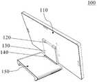请参考图5,图5是本发明的显示装置的另一实施例的横向形态的立体图。在此实施例中,显示装置100还包括底座160。底座160与基座150通过外连接部154(未显示于图5,但显示于图3及图4)相连接。在此实施例中,基座150调整成垂直的状态,底座160平放在一个承载平面(例如桌面)上,此时底座160成为承载屏幕本体110及连接臂130的基础,使得屏幕本体110维持稳定,而基座150形成为连接臂130的延伸而增加屏幕的高度。Please refer to FIG. 5 . FIG. 5 is a perspective view of another embodiment of the display device of the present invention in a horizontal form. In this embodiment, the